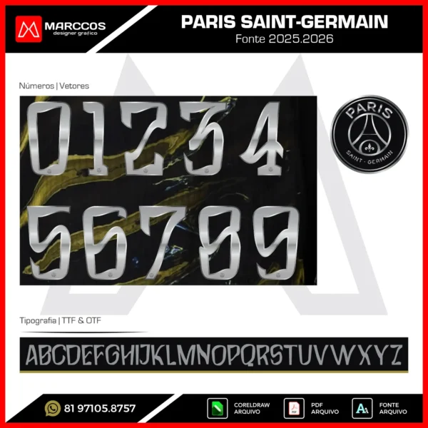 - Fonte Instalável: La tipografía utilizada en la numeración del diseño está incluida, lo que te permite modificar fácilmente los números y nombres según tus necesidades.